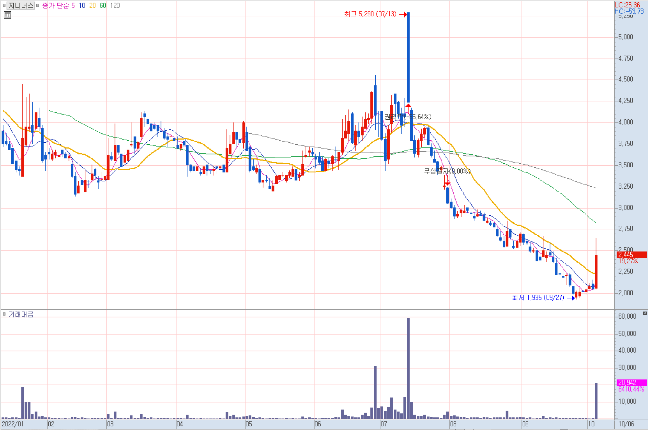 지니너스 일봉 차트