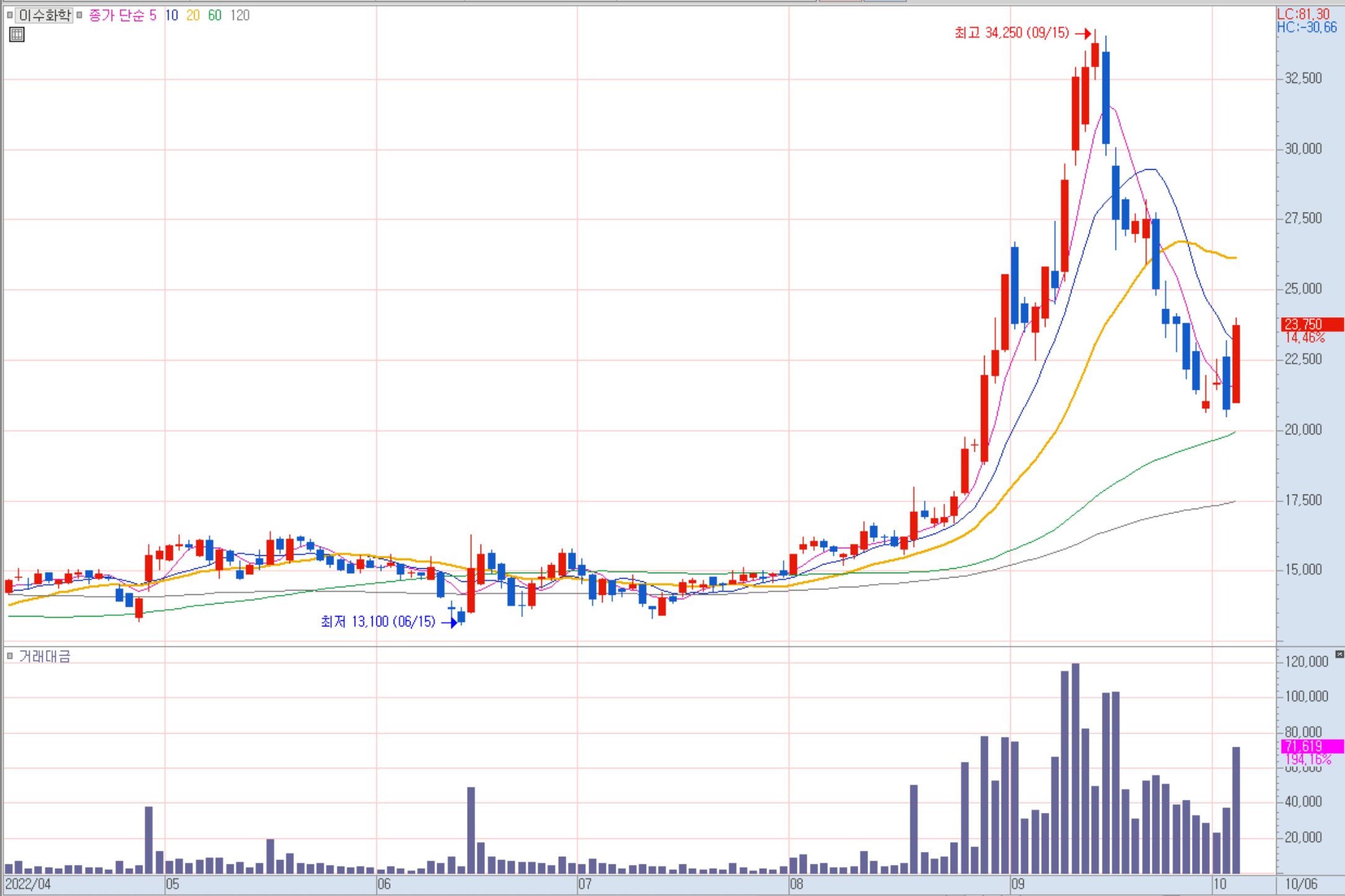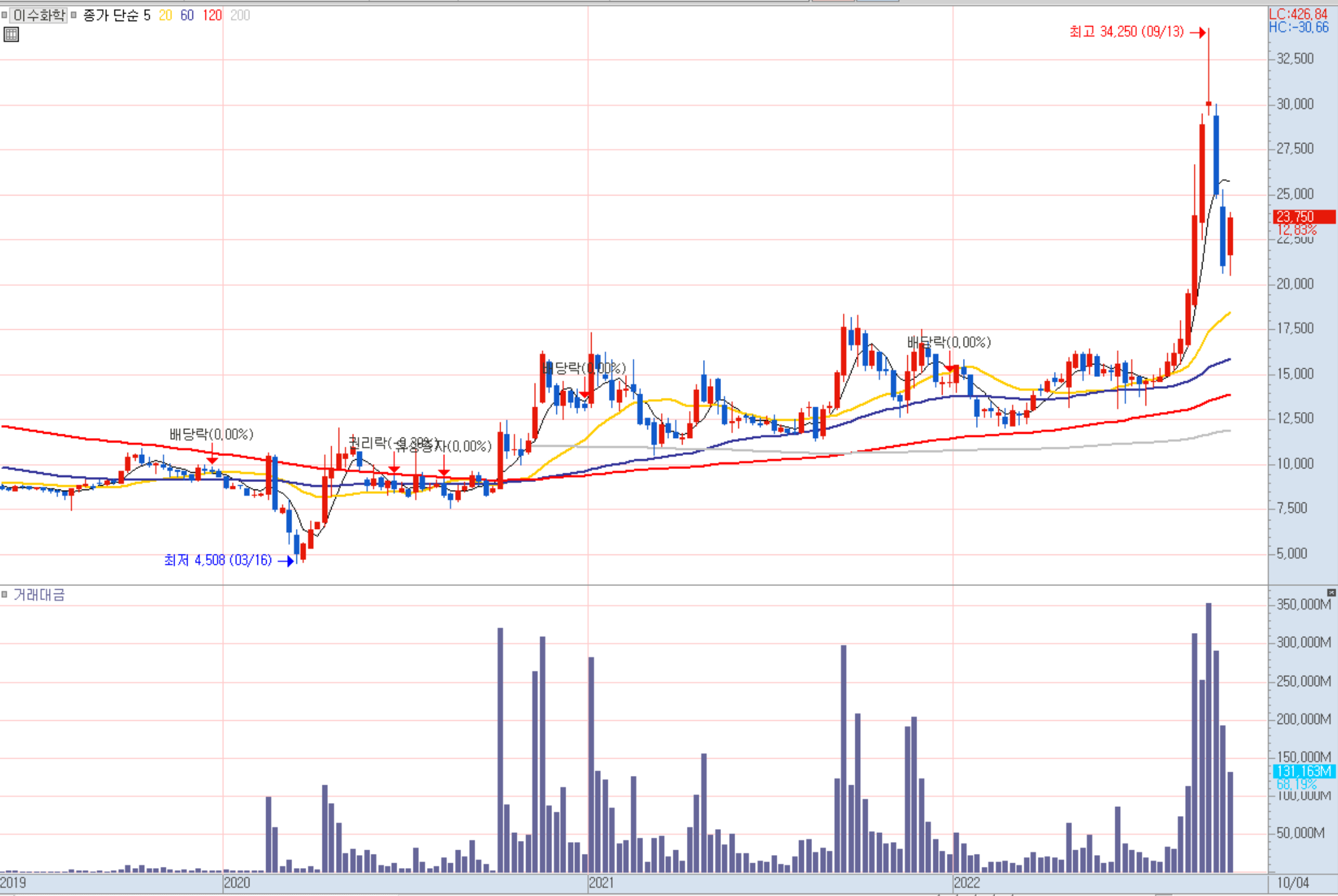 이수화학 주봉 차트