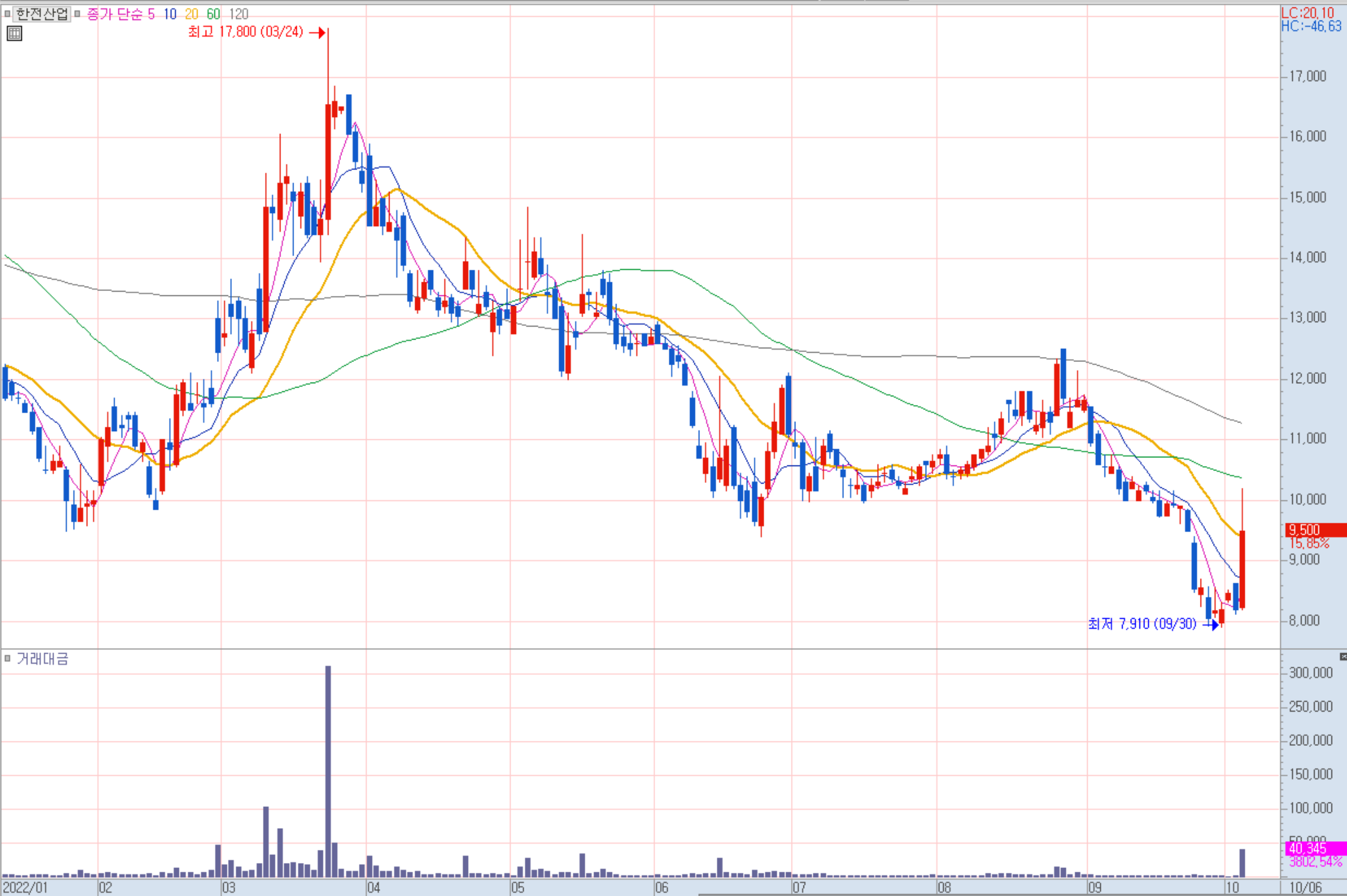 한전산업 일봉 차트