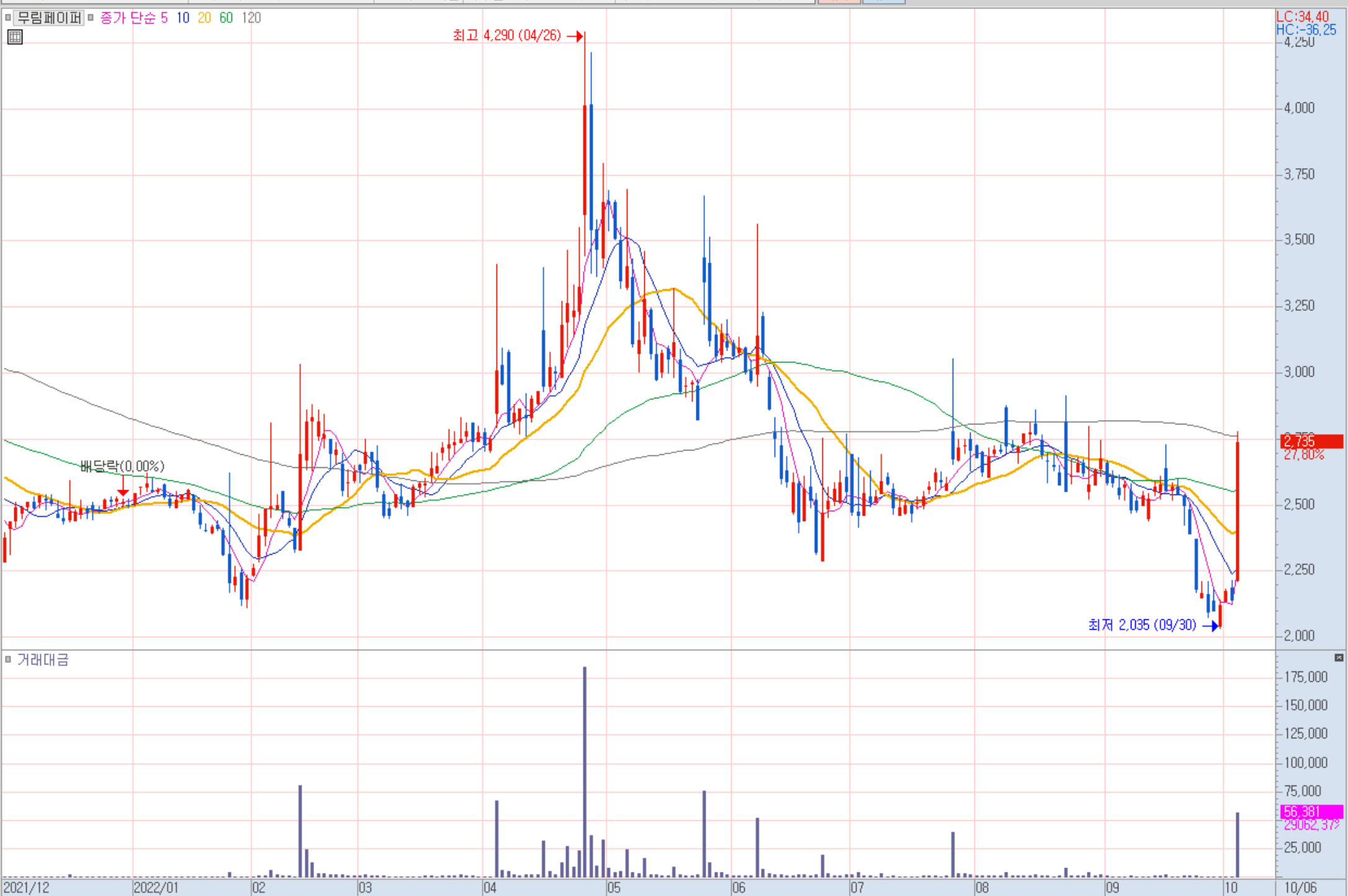 무림페이퍼 주봉 차트