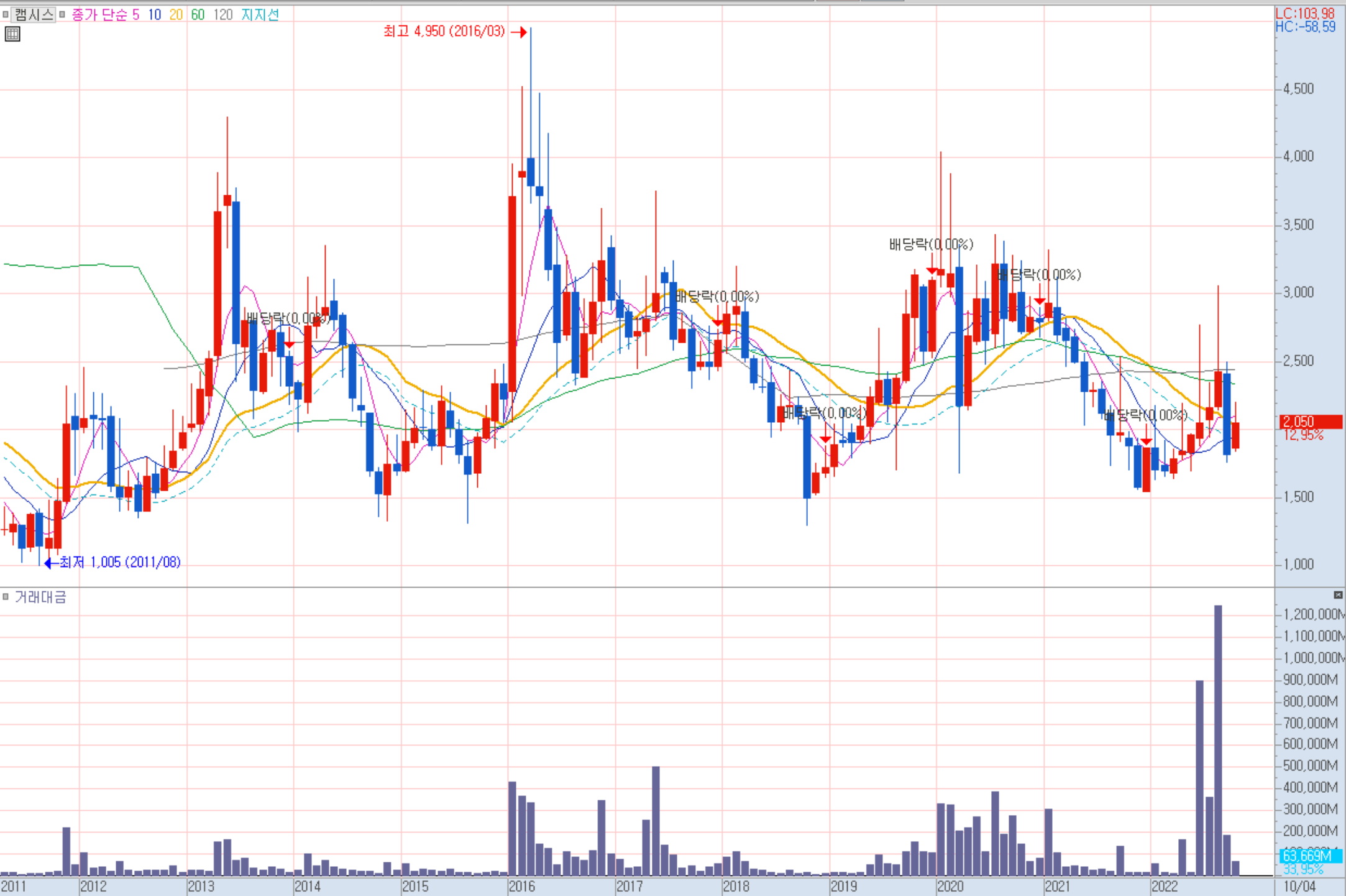 캠시스 주봉 차트