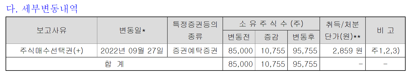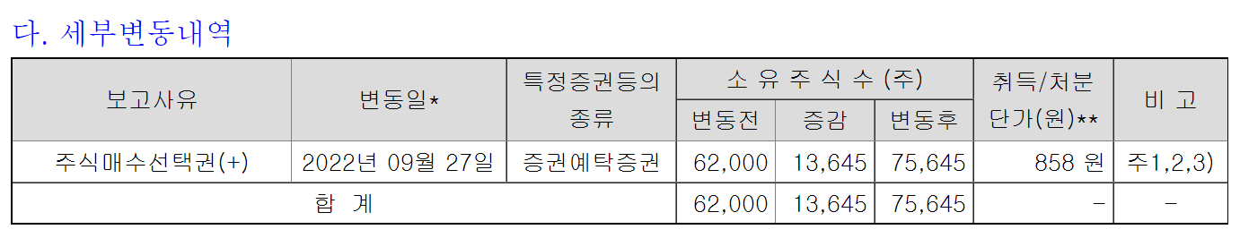 김태우 최고재무책임자 소유 주식 변동 내역