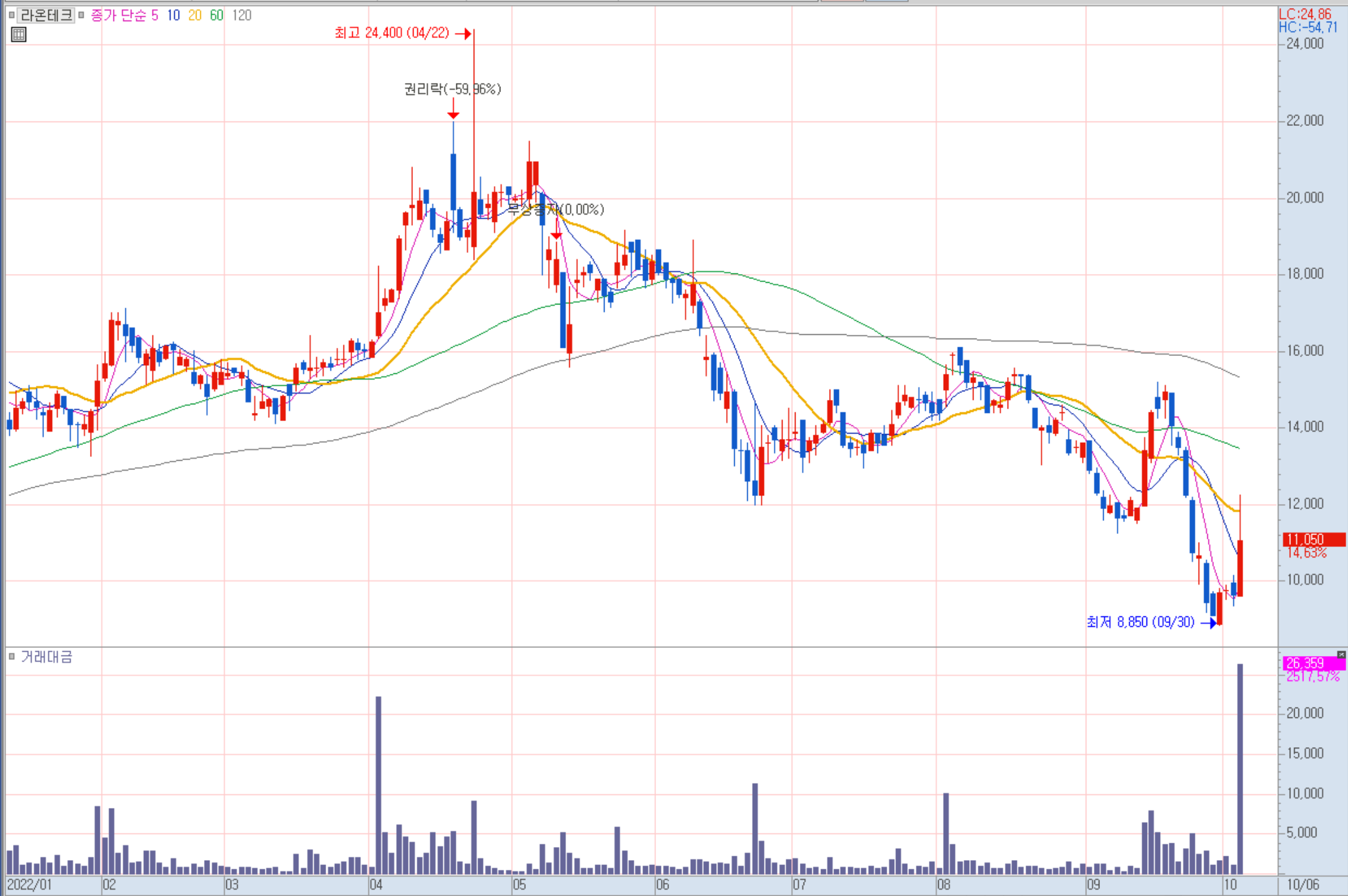 라온테크 일봉 차트
