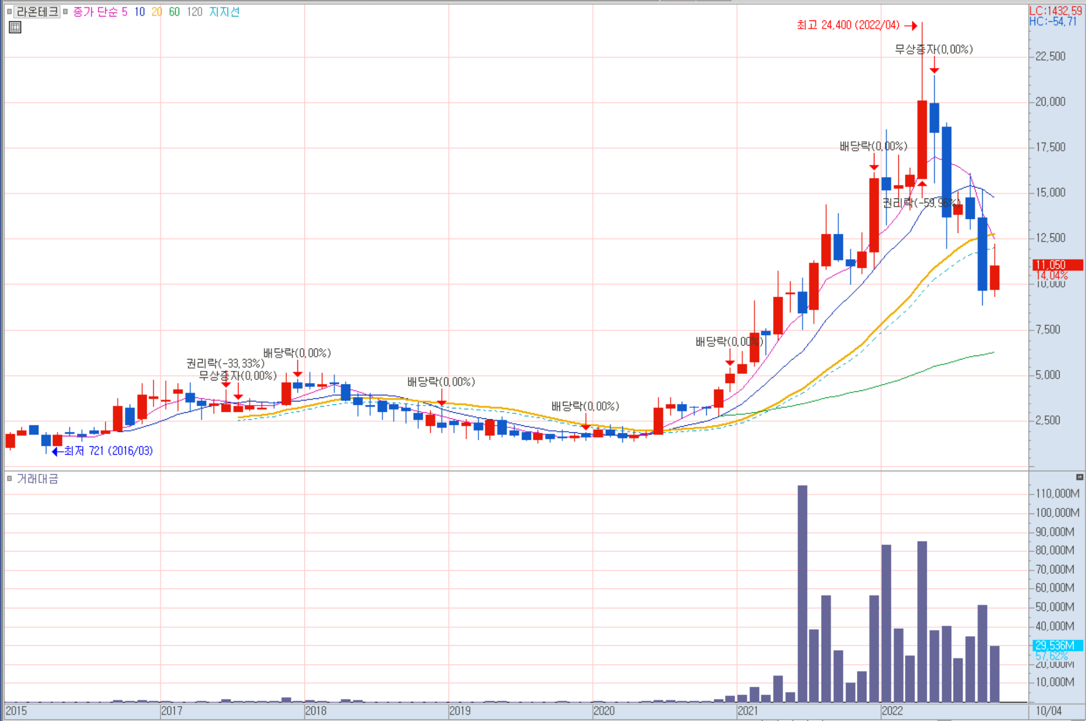 라온테크 주봉 차트