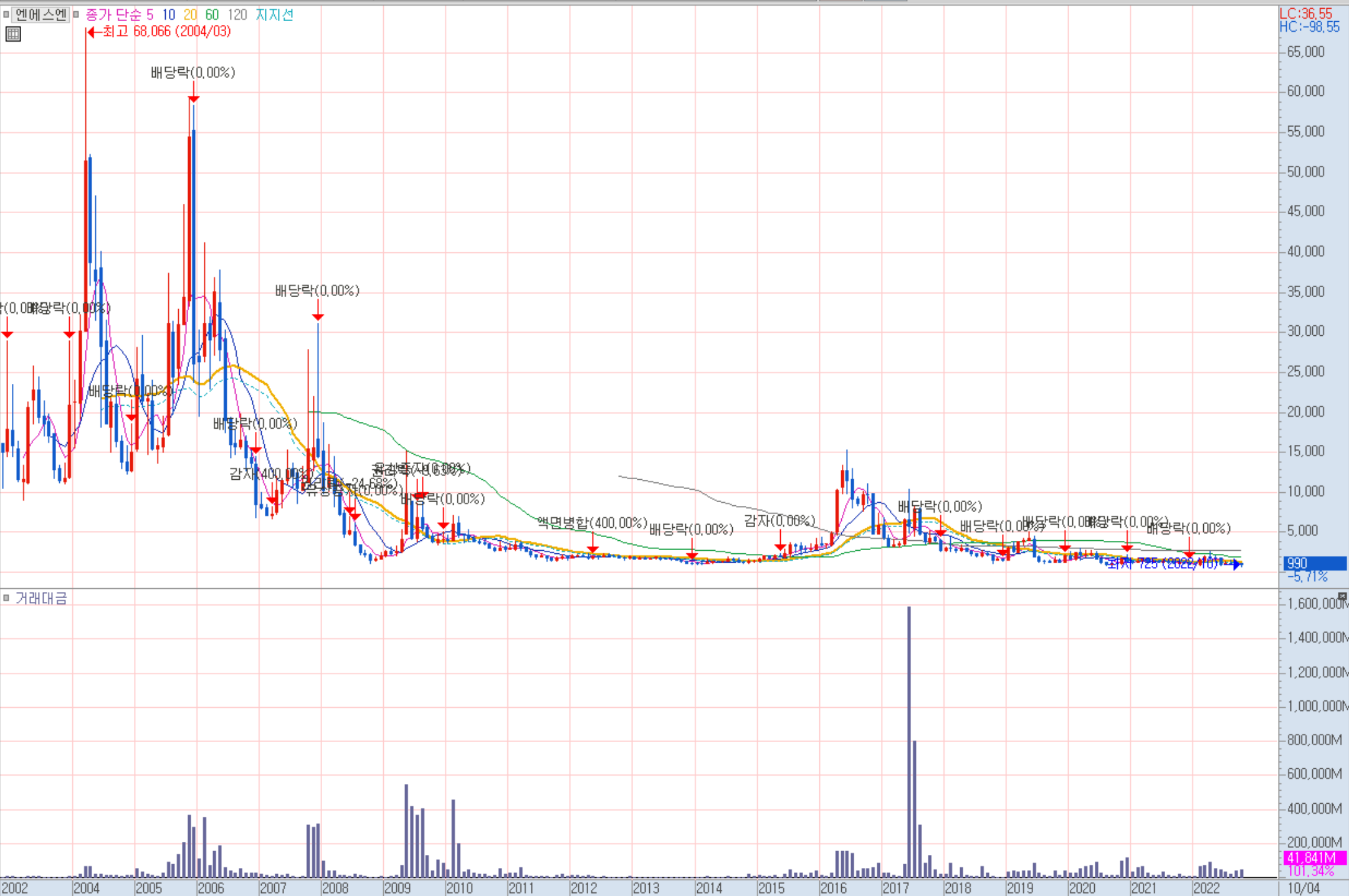 엔에스엔 주봉 차트