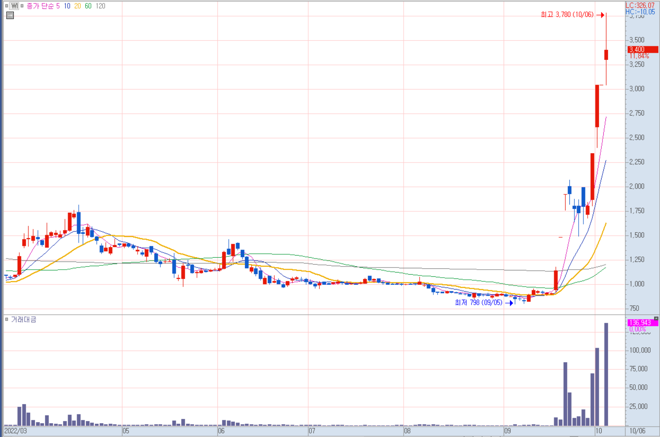 미코 주봉 차트