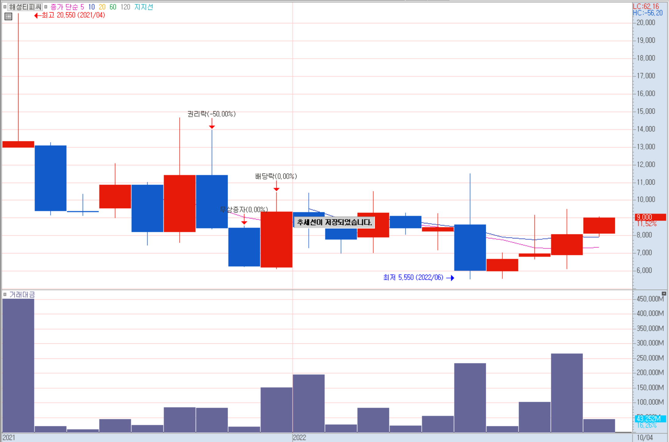 해성티피씨 일봉 차트